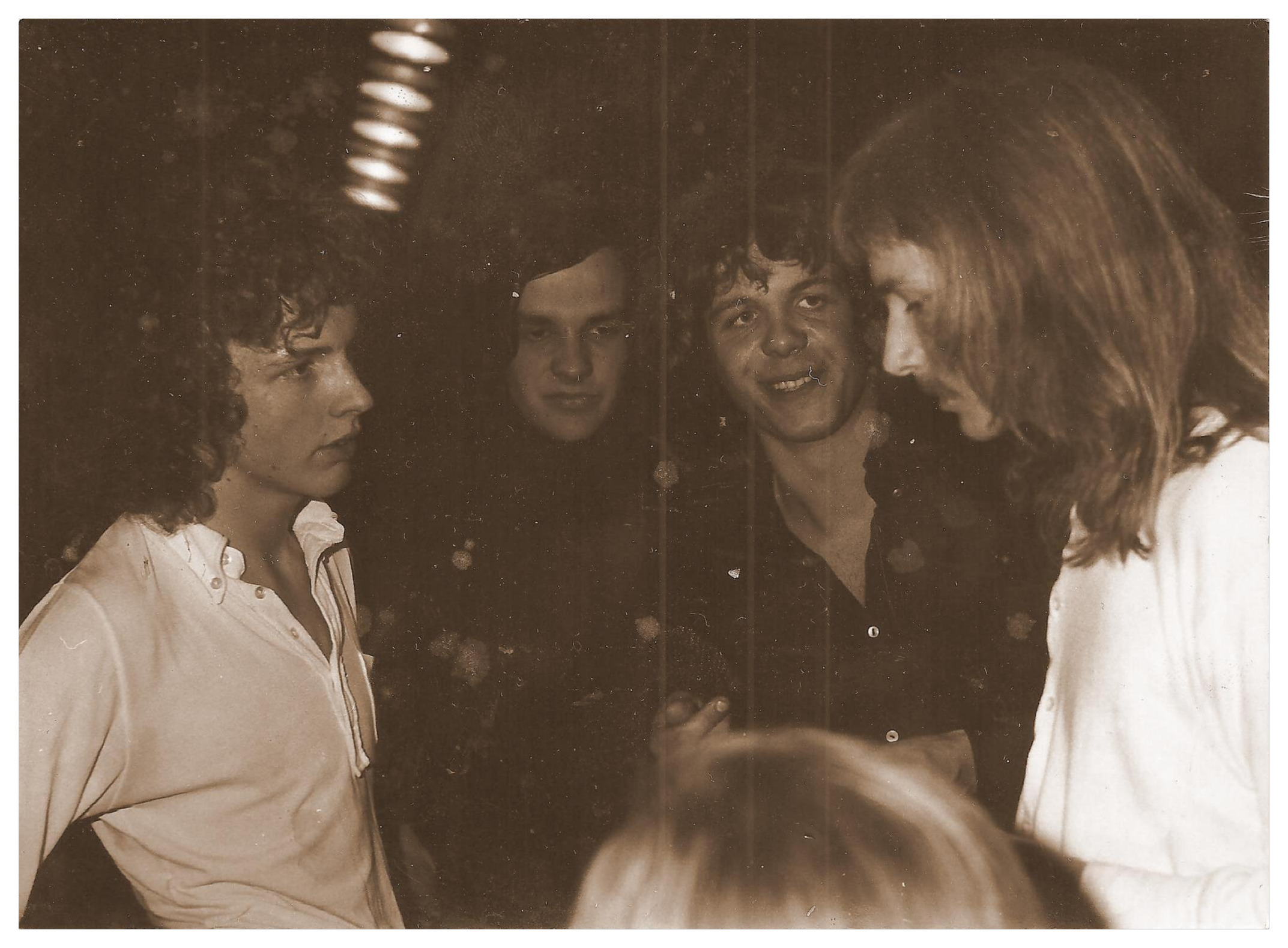 Christoph Haas (re.) vor einem Auftritt mit der Blues-Rockgruppe SPES (1972) |